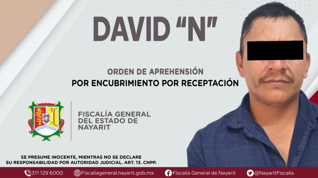 La Fiscalía General de Nayarit a través de la Agencia de Investigación Criminal dio cumplimiento a una orden de aprehensión en la capital nayarita contra David “N”, por su presunta participación en hechos que según apreciación de la ley encuadran el delito de encubrimiento por receptación, cometido en agravio de la sociedad.