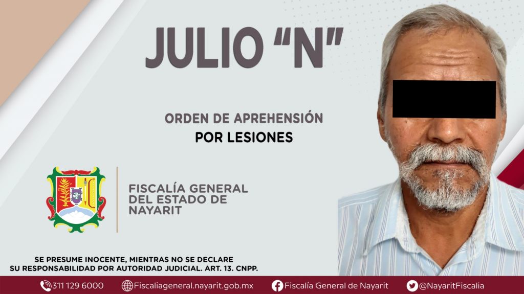La Fiscalía General de Nayarit a través de la Agencia de Investigación Criminal dio cumplimiento a una orden de aprehensión en la capital nayarita contra Julio “N”, por su presunta participación en hechos que según apreciación de la ley encuadran el delito de lesiones, cometido en agravio de una persona de sexo masculino de identidad reservada.