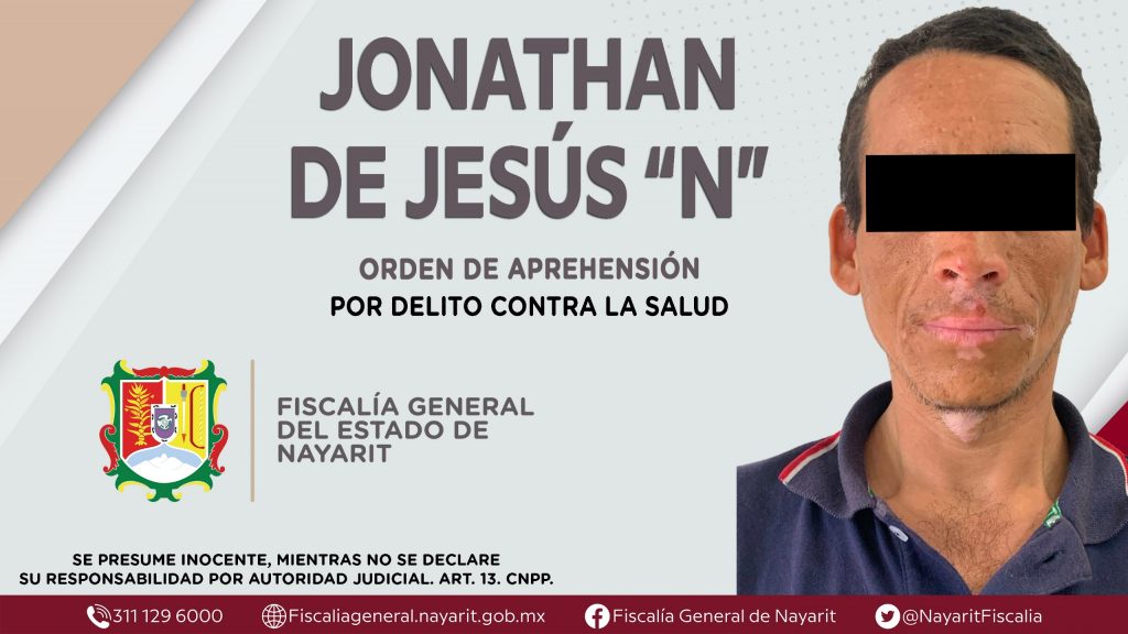 Elementos de la Agencia de Investigación Criminal de Nayarit ejecutaron una orden de aprehensión en la ciudad de Tepic contra Jonathan de Jesús “N”, por su presuntiva participación en hechos que según apreciación de la ley encuadran el delito contra la salud en su modalidad de narcomenudeo -en la hipótesis de posesión de psicotrópicos (metanfetaminas)-, cometido en contra de la sociedad.
