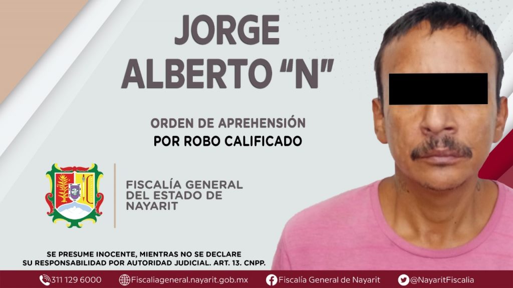Fiscalía General de Nayarit a través de la Agencia de Investigación Criminal, ejecutó una orden de reaprehensión en la ciudad de Tepic contra Jorge Alberto “N”, por su probable participación en hechos que la ley califica como delito de robo calificado, cometido en agravio de una persona de sexo femenino cuya identidad se reserva.