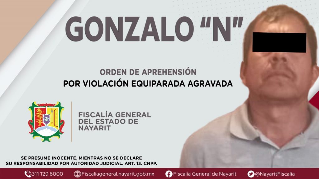 Elementos de la Agencia de Investigación Criminal dieron cumplimiento a una orden de aprehensión en el municipio de Jala contra Gonzalo “N”, por su presunta participación en hechos que bajo la apreciación de la ley configuran el delito de violación equiparada agravada, cometido en agravio de una persona menor de dieciocho años de identidad reservada.