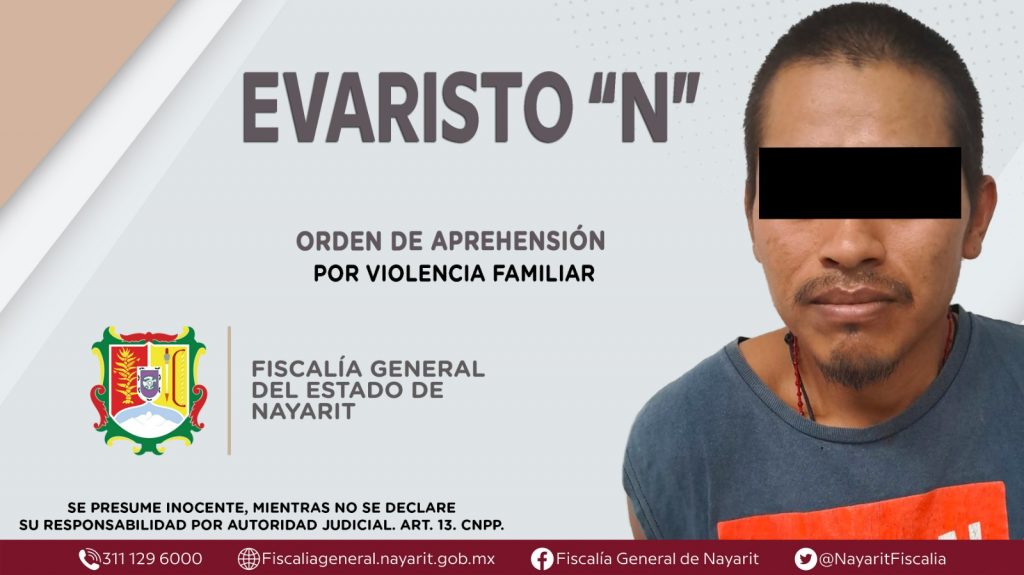 Elementos de la Agencia de Investigación Criminal de Nayarit ejecutaron una orden de aprehensión en la localidad Valle de Banderas, municipio de Bahía de Banderas contra Evaristo “N”, por su presunta participación en hechos que según apreciación de la ley encuadran el delito de violencia familiar.
