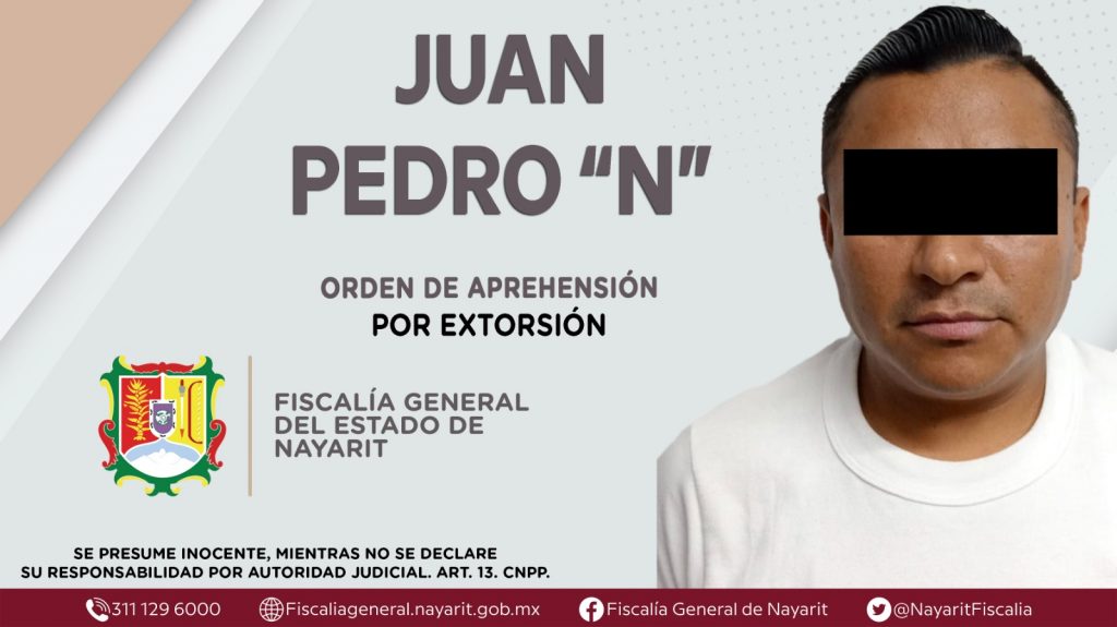 Elementos de la Agencia de Investigación Criminal de Nayarit ejecutaron una orden de aprehensión en la capital nayarita contra Juan Pedro “N”, por su presunta participación en hechos que según apreciación de la ley configuran el delito de extorsión, ilícito cometido en agravio de una persona de sexo femenino de identidad reservada.