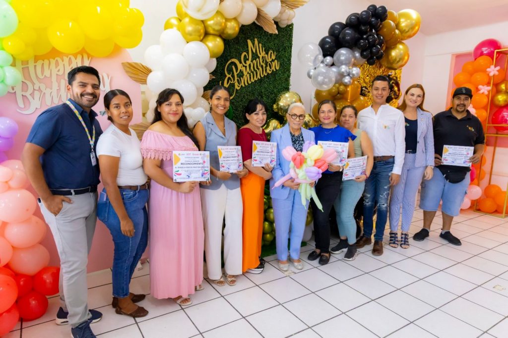 La presidenta del Sistema DIF Nayarit, doctora Beatriz Estrada Martínez, encabezó la clausura de los cursos de 60 horas impartidos en el Centro de Capacitación (CECAP), donde mujeres y hombres egresaron exitosamente de las disciplinas de Decoración Básica con Globos y Masajes con Maderoterapia.