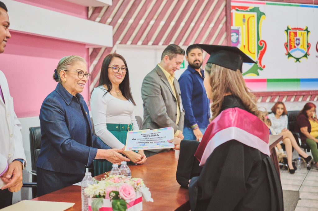 “Yo creo que es un día sumamente importante, lleno de muchas emociones y antes que nada, del compromiso y la responsabilidad que están adquiriendo a partir de este momento, porque terminan una etapa de preparación, de capacitación y ahora viene la siguiente en donde van a poner en práctica todos los conocimientos adquiridos en este Centro de Capacitación, el cual persigue más que nada motivarlas a ustedes, incentivarlas para que puedan lograr y cumplir con las metas y objetivos que se han trazado, que sean capaces de superarse, de seguir adelante tanto personal como profesionalmente, que todas ustedes tengan el éxito que se merecen”, enfatizó la doctora Beatriz Estrada Martínez.
