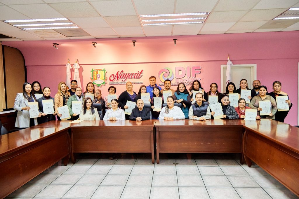 La presidenta del Sistema DIF Nayarit, doctora Beatriz Estrada Martínez, encabezó la clausura del diplomado “Terapia de Pareja en Estancamiento Emocional”, dirigido a profesionales de la salud mental de los sistemas municipales DIF de todo el estado, y psicólogas y psicólogos en general, con el objetivo de especializarse en la comprensión de conflictos que surgen en las parejas y puedan así fortalecer los núcleos familiares.
