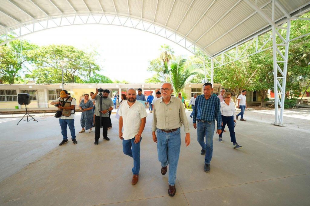 En el municipio de Tuxpan, el gobernador del estado de Nayarit, Miguel Ángel Navarro Quintero, continuó su jornada de trabajo de este domingo en la Secundaria General “Heriberto Jara”, donde la administración estatal construyó un domo, y está llevando a cabo la reconstrucción del área cívica, la demolición de bardeo con daño estructural, así como la colocación de malla, con una inversión de 2 millones 750 mil pesos.