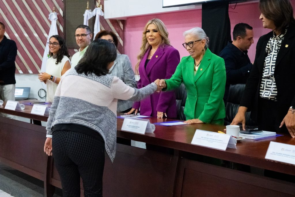 La presidenta del Sistema DIF Nayarit, doctora Beatriz Estrada Martínez, encabezó la entrega de 159 constancias a igual número de personas que concluyeron con éxito el diplomado: “Reflexiones para la Construcción de la Agenda Local en Materia de Cuidados”, el cual tuvo como objetivo otorgar las herramientas necesarias a las y los participantes para que juntas y juntos puedan ayudar en la creación de un Sistema Estatal de Cuidados, inclusivo, justo y con perspectiva de género.
