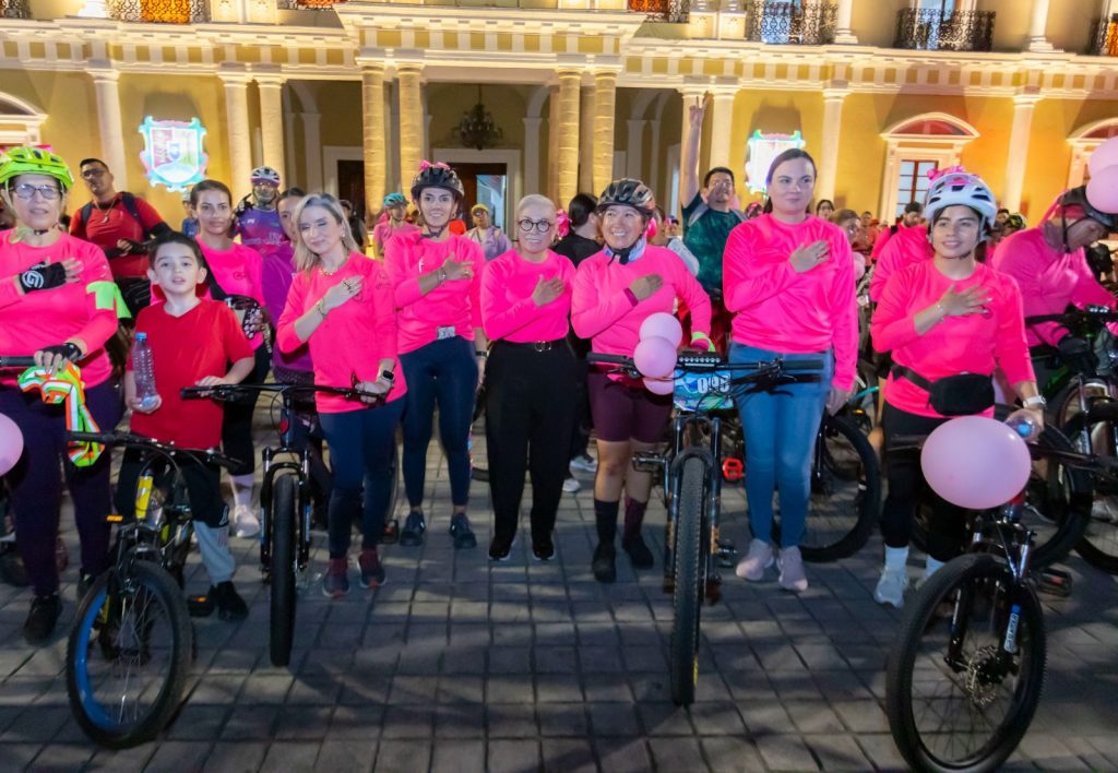Esta actividad, realizada en el marco del mes de Concientización sobre el Cáncer de Mama, y coordinada con la Secretaría de Movilidad de Nayarit, reunió a más de 300 personas en un recorrido de 11.2 kilómetros en bicicleta; la titular de la asistencia social en la entidad, subrayó su compromiso con la promoción de la salud y la solidaridad con quienes atraviesan este padecimiento, recordando, que en el Corazón de Tu Gobierno, cuentan con una mano amiga que les apoya en todo momento.