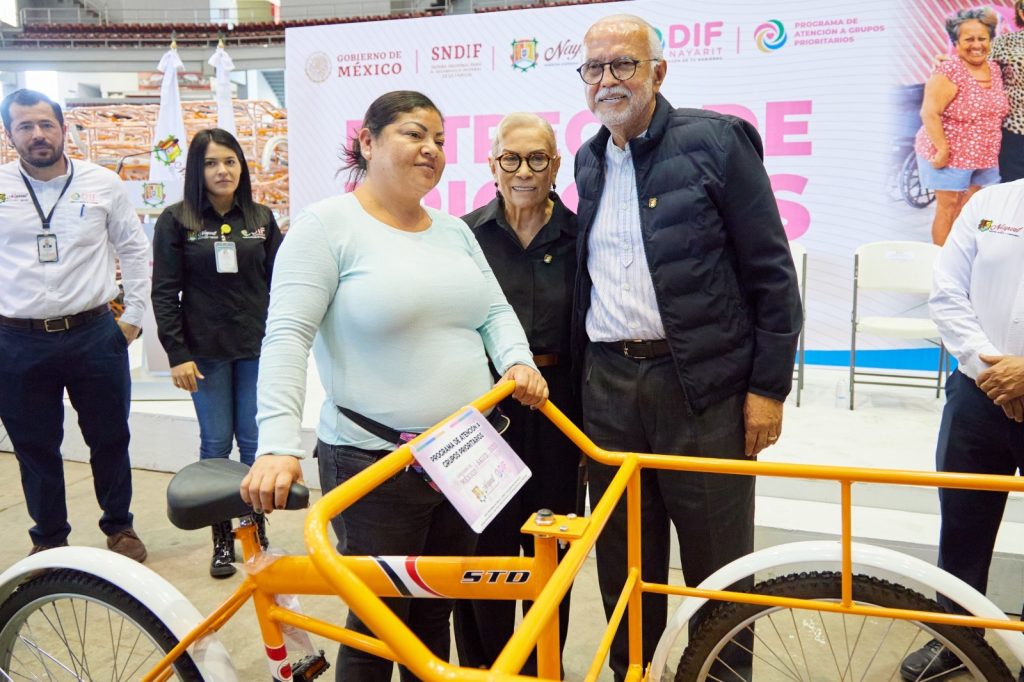 María del Carmen García Mora, es una de las cientos de personas que han sido beneficiadas con la entrega de un triciclo de carga. Ella comenta que después de haberse quedado desempleada, tuvo que encontrar la manera de llevar recurso a su casa y para su pequeña hija, por lo cual decidió pedir apoyo en DIF Nayarit y solicitar un triciclo.
