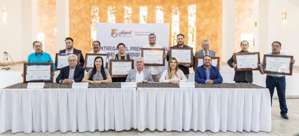 Del presídium también formaron parte el Director General de Comunicación Social del Poder Ejecutivo, Rogelio Plascencia Marmolejo, y el Presidente del Comité Organizador del Premio Estatal de Periodismo, Jesús René Ruiz Sifuentes.
