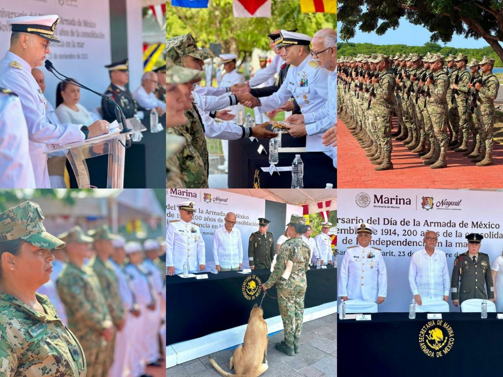Este domingo, el gobernador del estado de Nayarit, Miguel Ángel Navarro Quintero, asistió en la Décima Zona Naval de San Blas al evento conmemorativo “Aniversario del Día de la Armada de México, 23 de noviembre de 1914, 200 años de la consolidación de la independencia en la mar”, donde reconoció la labor de mujeres y hombres que protegen la soberanía nacional y contribuyen a la seguridad de las familias nayaritas.