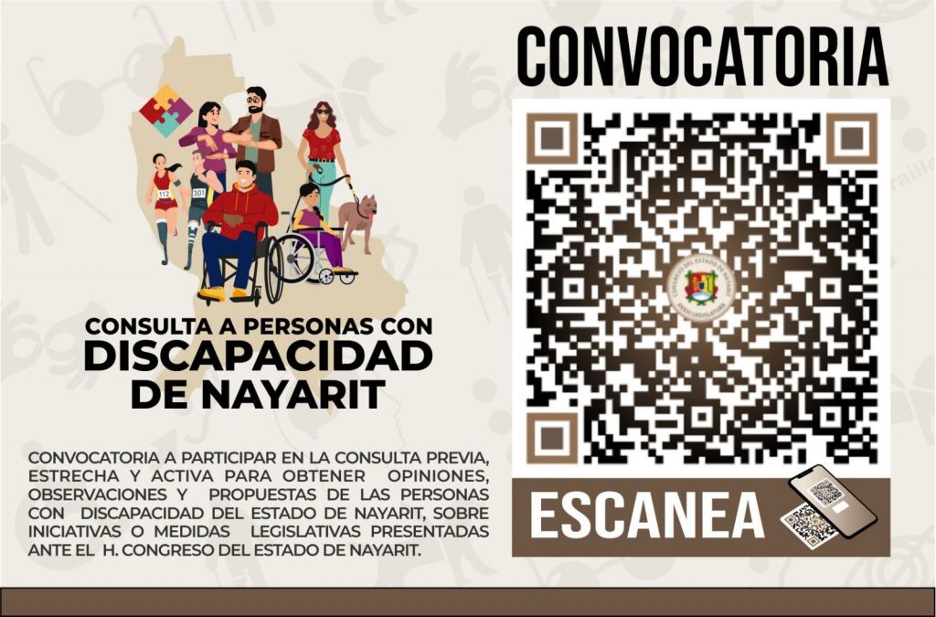 La consulta a personas con discapacidad se realizará a través de audiencias públicas en cuatro sedes presenciales y un evento virtual, iniciando el miércoles 30 de agosto en Tepic a las 16 horas en las instalaciones del Centro de Rehabilitación y Educación Especial (CREE) con domicilio en Boulevard Luis Donaldo Colosio 990, Ciudad Industrial.