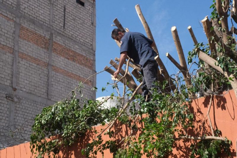 Mediante el uso de una motosierra de extensión se procedió a cortar los ejemplares. Asimismo, se podó un árbol que por sus grandes dimensiones presentaba riesgo para la estadía en el plantel. Estas acciones, se realizan con el fin de que las y los estudiantes puedan estudiar de manera segura.