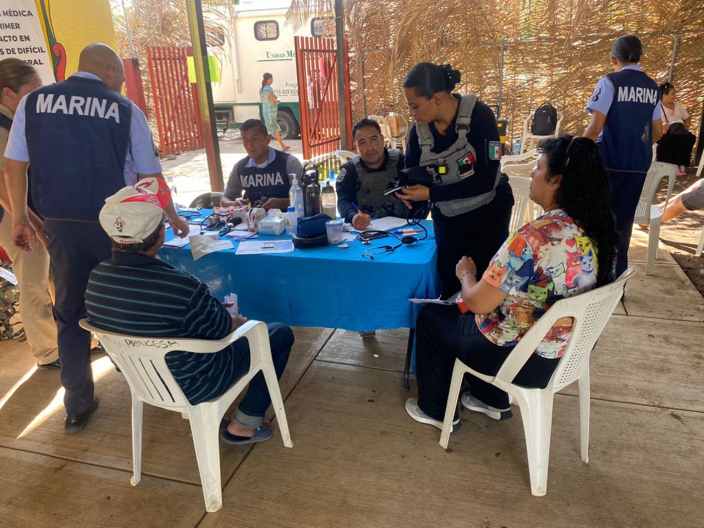Estas atenciones se llevaron a cabo en la localidad de Ixtapa de la Concepción, brindando atención médica a 45 personas, por parte de la Unidad Medica Táctica de la Policía Estatal en coordinación con personal de IMSS Bienestar «San Francisco» y Secretaría de Marina.