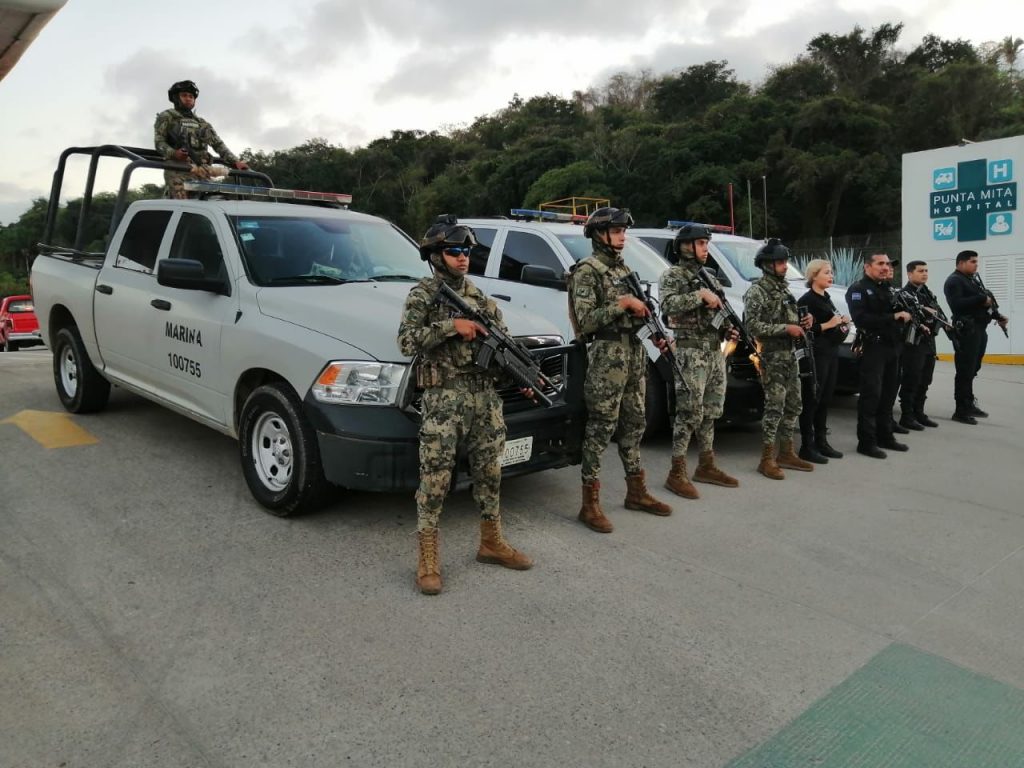Las acciones, se llevan a cabo de manera coordinada entre elementos de la Policía Estatal y la Secretaría de Marina en la localidad de Bucerías del municipio de Bahía de Banderas.