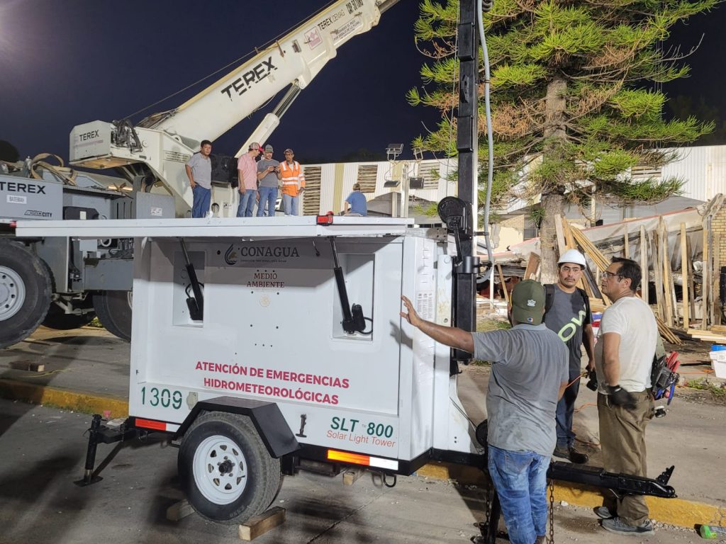 Con el fin de facilitar los trabajos de búsqueda y rescate de personas atrapadas en la iglesia de Santa Cruz, en Ciudad Madero, Tamaulipas, brigadistas de Protección a la Infraestructura y Atención de Emergencias (PIAE), de la Comisión Nacional del Agua (Conagua), operaron una planta de luz que funciona con energía solar y genera un mínimo de ruido, lo que permite escuchar más fácilmente cualquier sonido que pudiera registrarse bajo los escombros, lo cual resulta estratégico en este tipo de emergencias.