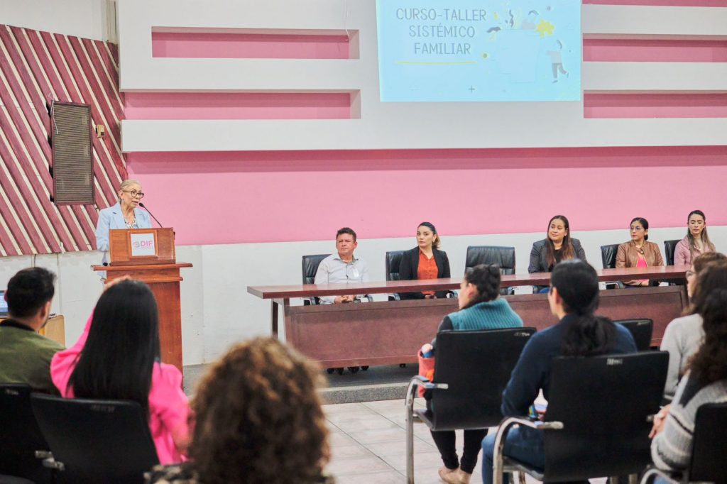 Con la finalidad de que las y los encargados de la salud mental que laboran en los DIF municipales, así como estudiantes y profesionales en psicología o carreras afines cuenten con las herramientas necesarias y actuales, que garanticen el desarrollo y la calidad en el servicio que se da en terapia a la población que lo requiere, el Sistema DIF Nayarit —que encabeza la doctora Beatriz Estrada Martínez—, dio inicio al curso-taller “Psicoterapia Sistémica Familiar”.