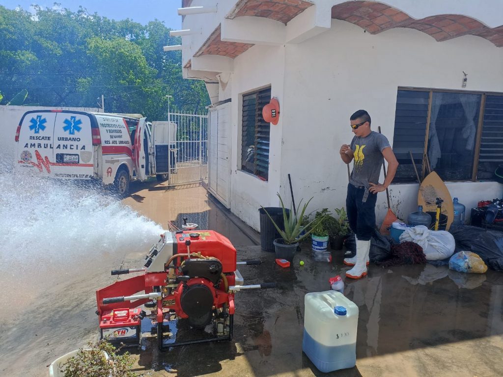 El Gobierno del Estado de Nayarit a través de la base regional de Guayabitos de Bombero de Nayarit, brindan apoyo ciudadano a vecinos de la colonia Pescadores, donde viviendas resultaran afectadas por el oleaje elevado en la localidad de La Peñita de Jaltemba del municipio de Compostela.