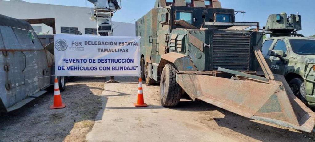 En el evento, llevado a cabo en las instalaciones de la FGR ubicadas en Reynosa, Tamaulipas, y relacionado con 12 expedientes, fueron destruidos 14 vehículos con blindaje artesanal, asegurados en diversos enfrentamientos en dicha entidad.