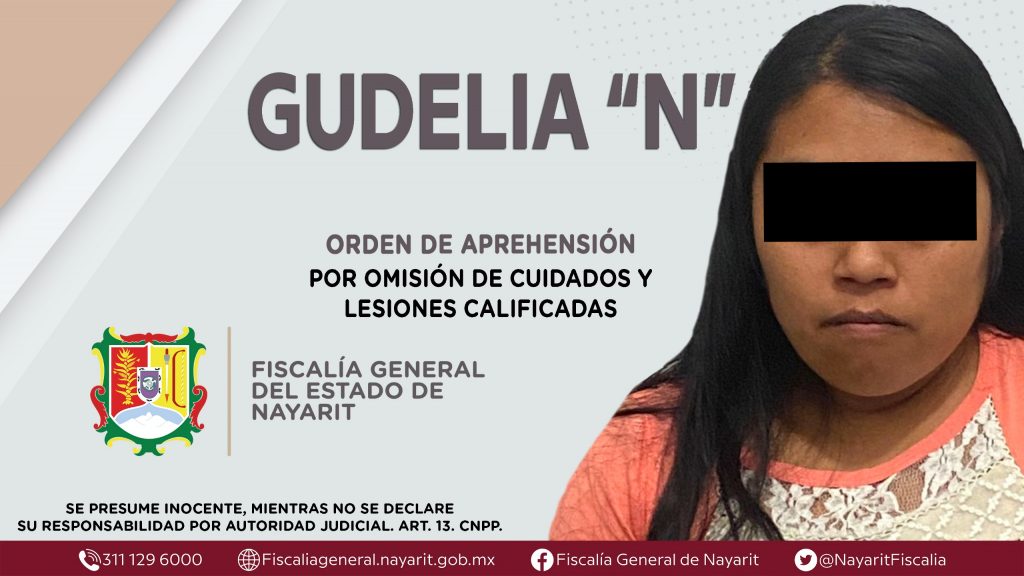 Elementos de la Agencia de Investigación Criminal de Nayarit ejecutaron una orden de aprehensión en la ciudad de Tepic contra Gudelia “N”, por su presuntiva responsabilidad en hechos que según apreciación de la ley encuadran los delitos de violencia familiar y lesiones calificadas, además de violencia familiar en su modalidad de omisión de cuidados, los primeros dos delitos en agravio de un niño, en tanto el tercer delito contra tres niños. Las identidades de las víctimas se reservan.