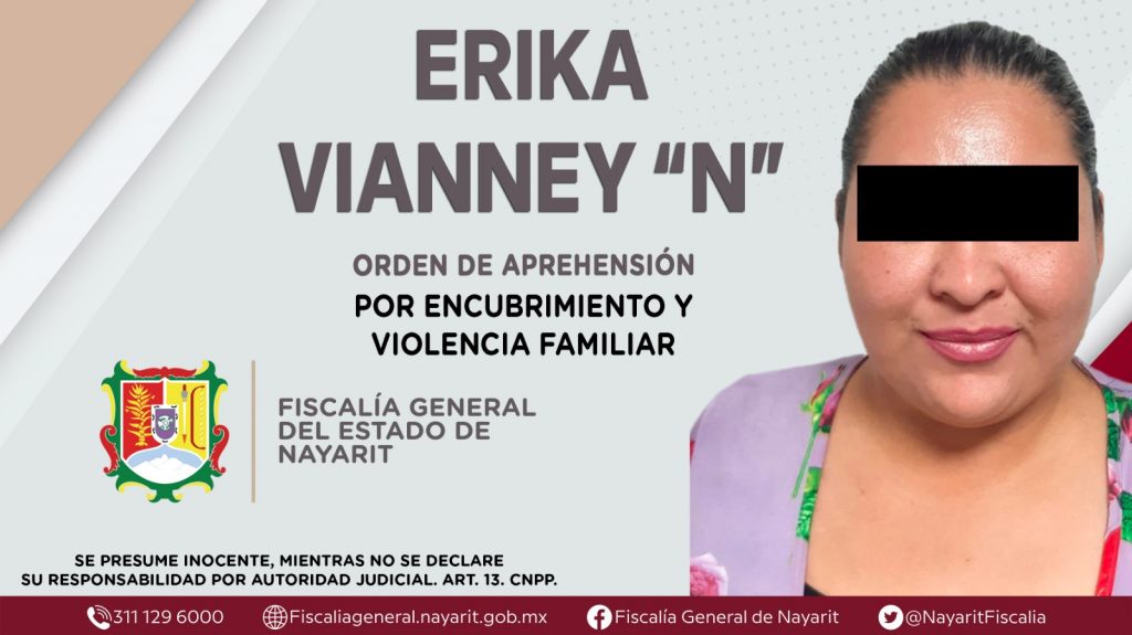 Elementos de la Agencia de Investigación Criminal de Nayarit ejecutaron una orden de aprehensión en la capital nayarita contra Erika Vianney “N”, por su presunta participación en hechos que según apreciación de la ley configuran los delitos de encubrimiento y violencia familiar, cometidos contra una adolescente de identidad reservada.