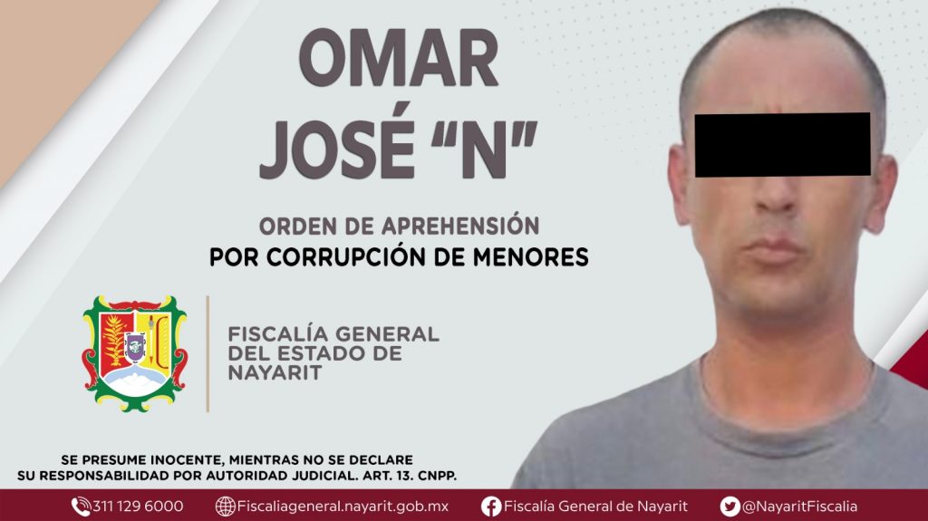 La Fiscalía General del Estado a través de la Agencia de Investigación Criminal dio cumplimiento a una orden de aprehensión en la localidad San Vicente, municipio de Bahía de Banderas contra Omar José “N”, por su presunta participación en hechos que según valoración de la ley configuran el delito de corrupción de menores, cometido en agravio de una persona menor de diecieocho años de identidad reservada.