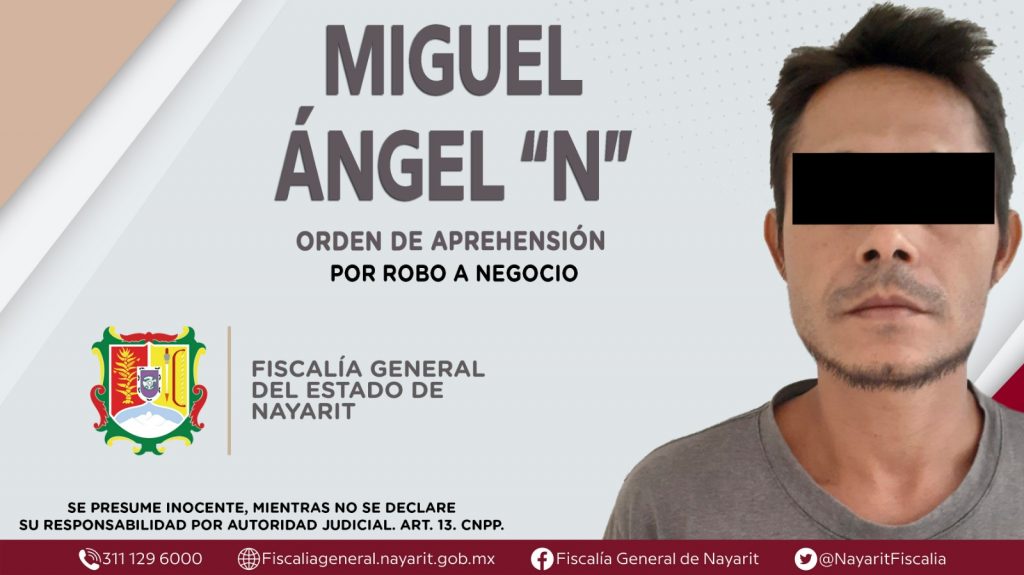 La Fiscalía General del Estado a través de la Agencia de Investigación Criminal dio cumplimiento a una orden de aprehensión en la localidad Mezcales, municipio de Bahía de Banderas contra Miguel Ángel “N”, por su presunta participación en hechos que según apreciación de la ley encuadran el delito de robo, cometido en perjuicio de Nueva Walmart de México, S. de R. L. de C. V.