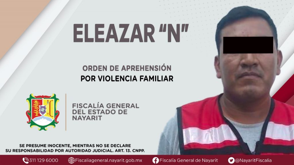 En el municipio de Bahía de Banderas, la Fiscalía General de Nayarit a través de la Agencia de Investigación Criminal ejecutó una orden de aprehensión contra Eleazar “N”, originario del estado de Guerrero y vecino de San José del Valle, municipio de Bahía de Banderas, por su presuntiva responsabilidad penal en hechos que la ley califica como delito de violencia familiar, cometido contra una persona de sexo femenino de identidad reservada.