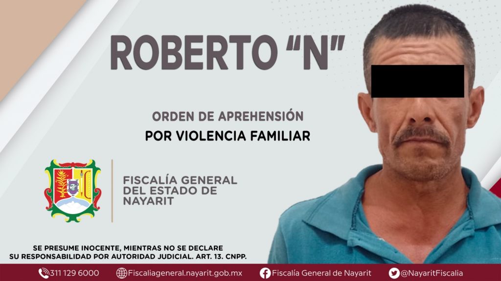 La Fiscalía General del Estado a través de la Agencia de Investigación Criminal dio cumplimiento a una orden de aprehensión en el municipio de Bahía de Banderas contra Roberto “N”, por su presunta participación en hechos que según apreciación de la ley configuran el delito de violencia familiar, cometido en agravio de una persona de sexo femenino de identidad reservada.