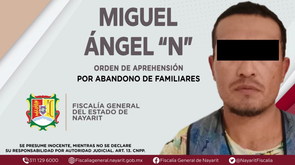 Elementos de la Agencia de Investigación Criminal de Nayarit ejecutaron una orden de aprehensión en el municipio de Compostela contra Miguel Ángel “N”, por su presunta participación en hechos que según apreciación de la ley encuadran el delito de abandono de familiares, cometido en agravio de tres personas menores de dieciocho años de identidades reservadas.