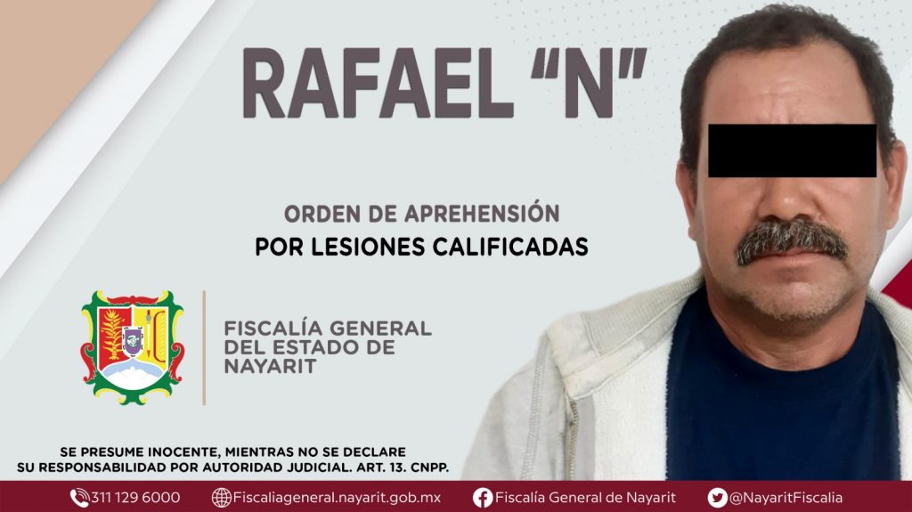Elementos de la Agencia de Investigación Criminal de Nayarit ejecutaron una orden de aprehensión en la localidad Zacualpan, municipio de Compostela contra Rafael “N”, por su presunta participación en hechos que según apreciación de la ley encuadran el delito de lesiones calificadas, cometido en agravio de una persona de sexo masculino de identidad reservada.
