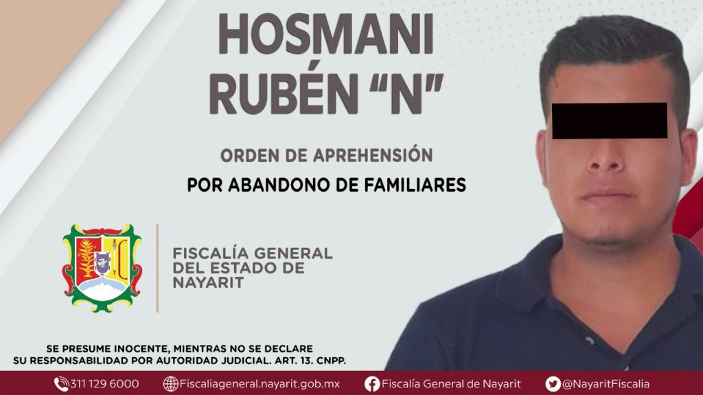 Elementos de la Agencia de Investigación Criminal dieron cumplimiento a una orden de aprehensión en el municipio de Jala contra Hosmani Rubén “N”, por su probable participación en hechos que la ley juzga como delito de abandono de familiares, cometido en agravio de un menor de edad cuya identidad es reservada.