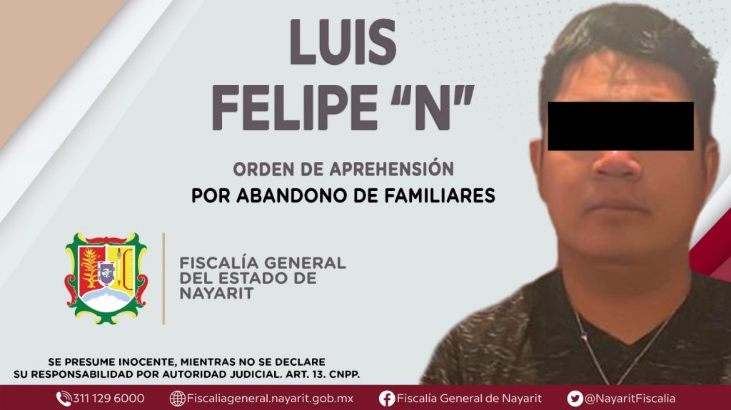 Elementos de la Agencia de Investigación Criminal de Nayarit ejecutaron una orden de aprehensión en el poblado Los Aguajes, municipio de Jala contra Luis Felipe “N”, por su presunta participación en hechos que según apreciación de la ley configuran el delito de abandono de familiares, cometido contra una persona menor de dieciocho años de identidad reservada.