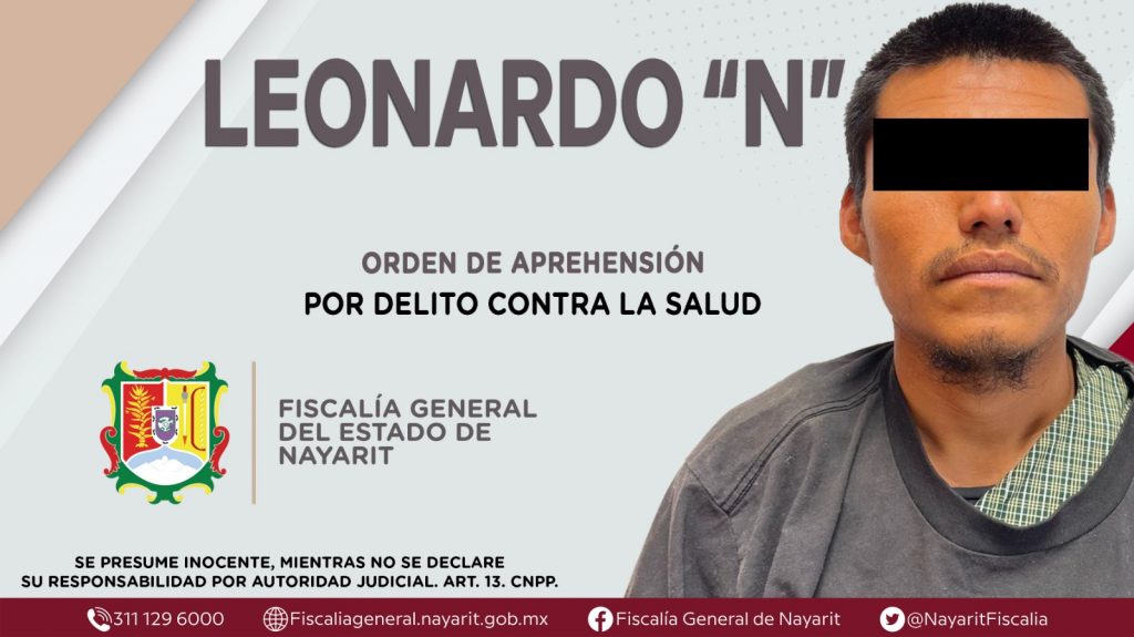 Elementos de la Agencia de Investigación Criminal de Nayarit ejecutaron una orden de aprehensión en la ciudad de Tepic contra Leonardo “N”, por su presunta participación en hechos que según apreciación de la ley encuadran el delito contra la salud en su modalidad de narcomenudeo -en su hipótesis de posesión de estupefacientes (marihuana)-, cometido en agravio de la sociedad.
