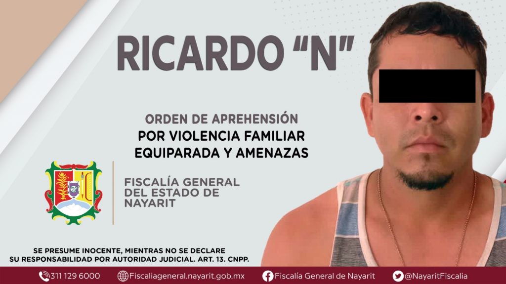 La Fiscalía General del Estado a través de la Agencia de Investigación Criminal dio cumplimiento a una orden de aprehensión en el municipio de Ruiz contra Ricardo “N”, por su presunta participación en hechos que según apreciación de la ley encuadran los delitos de violencia familiar equiparada y amenazas, cometidos en agravio de una mujer de identidad reservada.