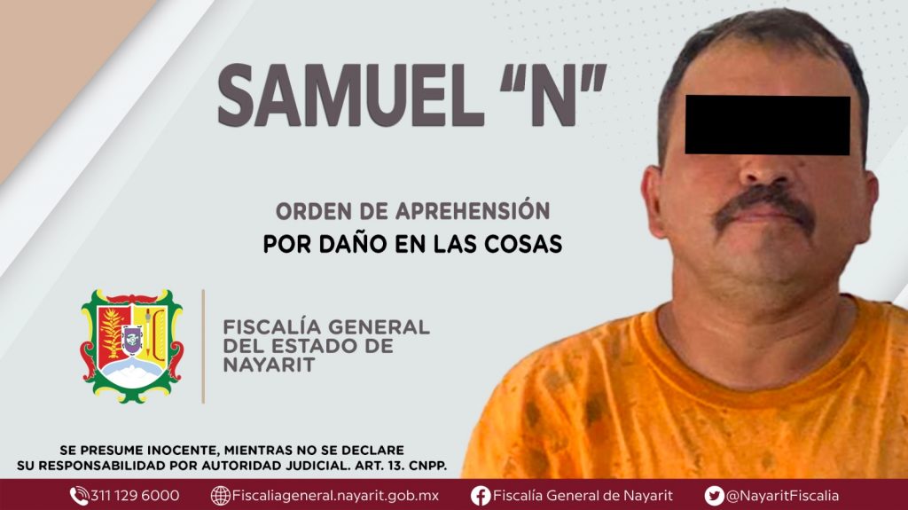 Elementos de la Agencia de Investigación Criminal de Nayarit ejecutaron una orden de aprehensión en la localidad Jalcocotán, municipio de San Blas contra Samuel “N”, la primera por su presunta participación en hechos que según apreciación de la ley encuadran el delito de daño en las cosas.