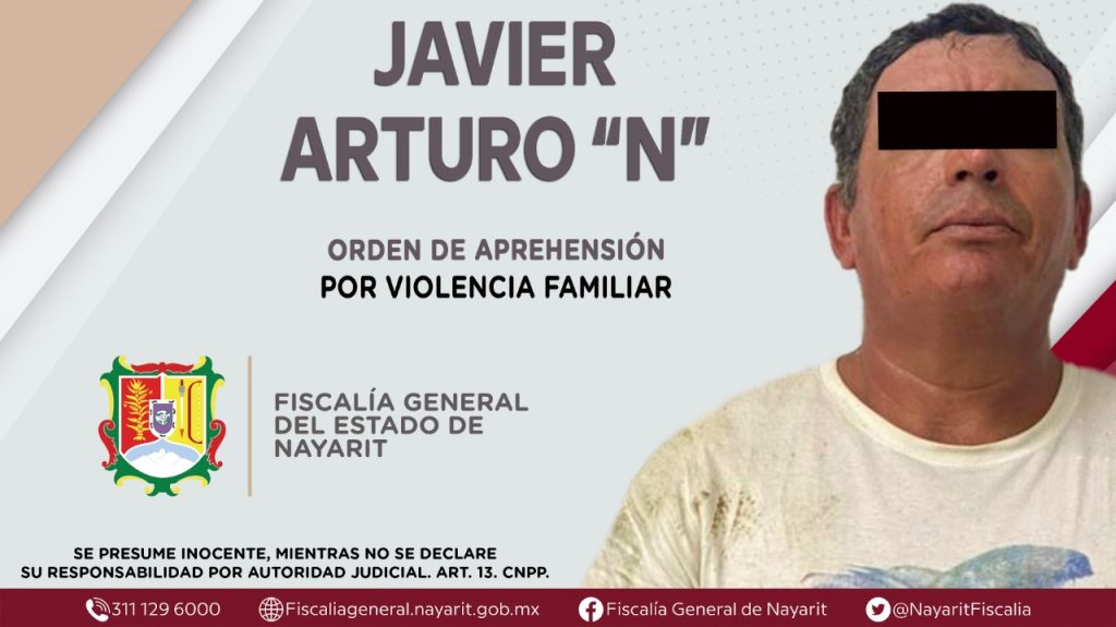 Fiscalía General de Nayarit a través de la Agencia de Investigación Criminal, ejecutó una orden de aprehensión en el municipio de San Blas contra Javier Arturo “N”, por su probable participación en hechos que la ley juzga como delito de violencia familiar, cometido en perjuicio de una persona de sexo femenino de identidad reservada.