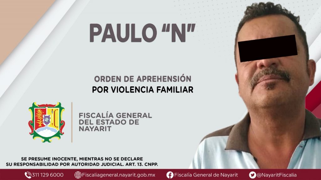 Fiscalía General de Nayarit a través de la Agencia de Investigación Criminal ejecutó una orden de aprehensión en el municipio de San Pedro Lagunillas contra Paulo “N”, por su tentativa participación en hechos que la ley califica como delito de violencia familiar, cometido en agravio de una persona de sexo femenino de identidad reservada.