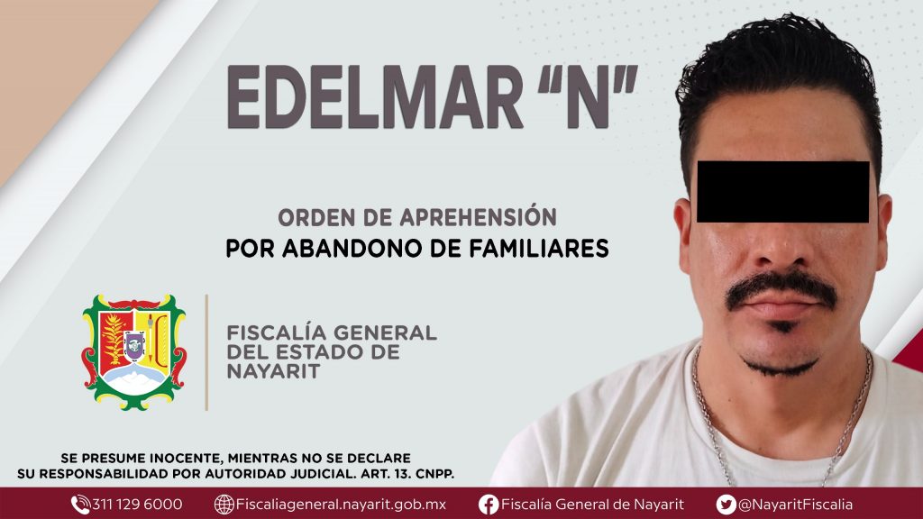 Elementos de la Agencia de Investigación Criminal de Nayarit ejecutaron una orden de aprehensión en la localidad El Ahualamo, municipio de Santa María del Oro contra Edelmar “N”, por su presunta participación en hechos que según apreciación de la ley encuadran el delito de abandono de familiares, en agravio de un niño de identidad reservada.