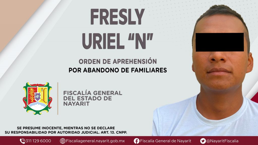 La Fiscalía General del Estado a través de la Agencia de Investigación Criminal dio cumplimiento a una orden de aprehensión en el municipio de Santa María del Oro contra Fresly Uriel “N”, por su presunta participación en hechos que según apreciación de la ley configuran el delito de abandono de familiares, cometido en agravio de una niña de identidad reservada.