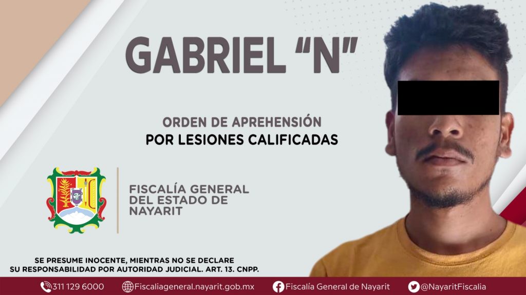 La Fiscalía General del Estado a través de la Agencia de Investigación Criminal dio cumplimiento a una orden de aprehensión en el municipio de Santiago Ixcuintla contra Gabriel “N”, por su presunta participación en hechos que según valoración de la ley configuran el delito de lesiones calificadas, ilícito cometido en agravio de una persona de sexo masculino de identidad reservada.