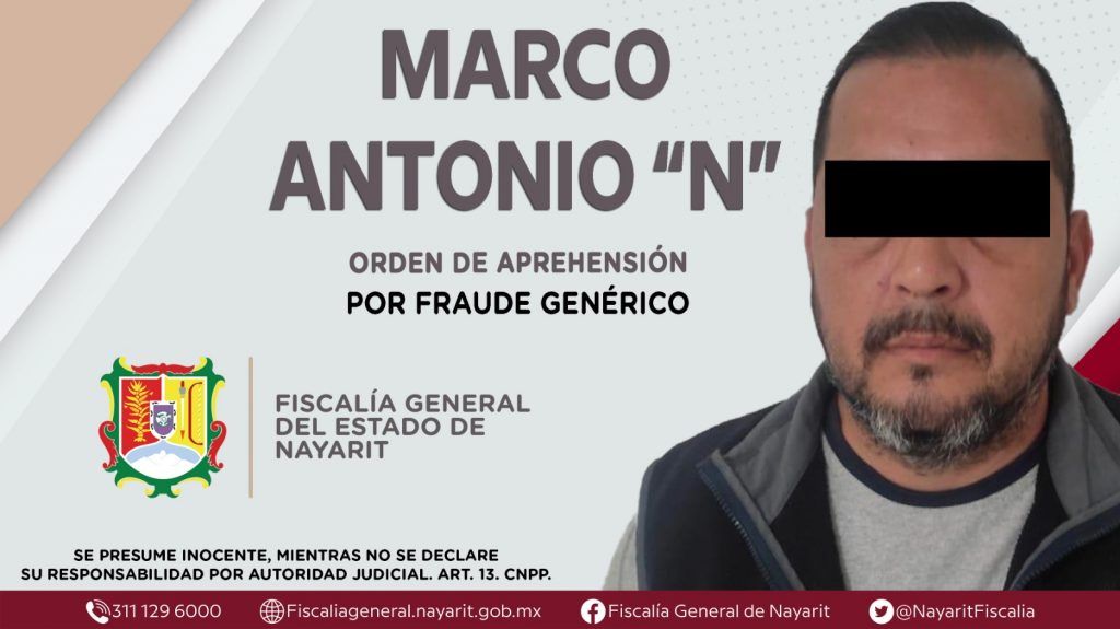 Elementos de la Agencia de Investigación Criminal de Nayarit ejecutaron una orden de aprehensión en el municipio de Santiago Ixcuintla contra Marco Antonio “N”, por su presunta participación en hechos que según apreciación de la ley encuadran el delito de fraude genérico, cometido en agravio de una persona de sexo femenino de identidad reservada.