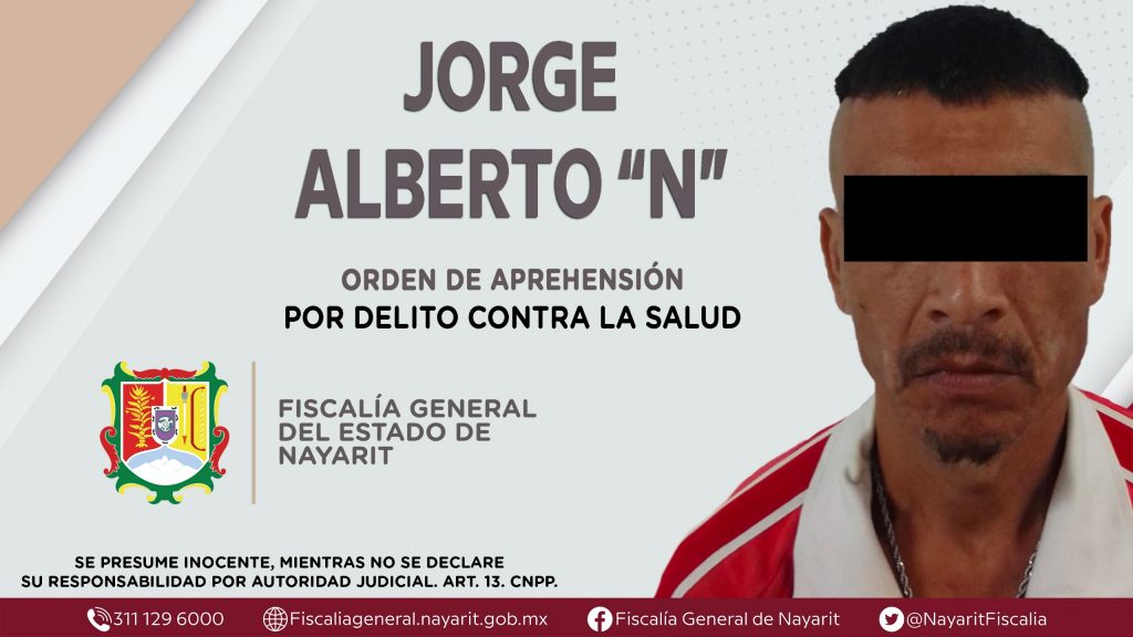 La Fiscalía General del Estado a través de la Agencia de Investigación Criminal dio cumplimiento a una orden de aprehensión en la ciudad de Tepic contra Jorge Alberto “N”, por su presunta participación en hechos que según apreciación de la ley configuran el delito contra la salud en su modalidad de narcomenudeo -en la hipótesis de posesión de psicotrópicos (metanfetaminas)-, cometido en agravio de la sociedad.