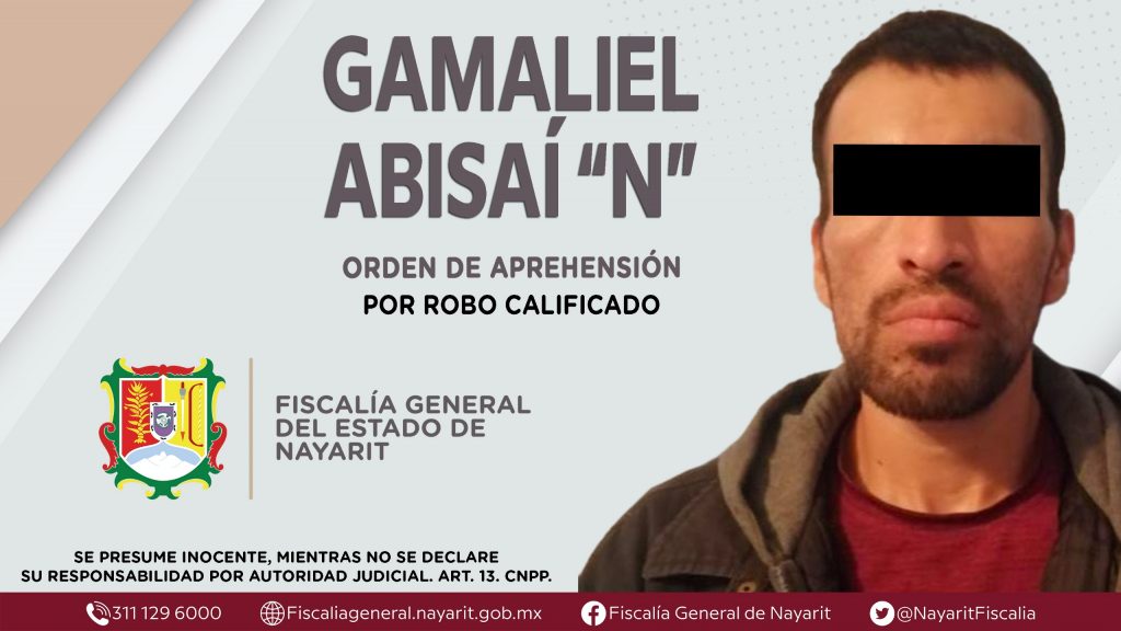 La Fiscalía General de Nayarit a través de la Agencia de Investigación Criminal dio cumplimiento a una orden de aprehensión en el municipio de Xalisco contra Gamaliel Abisaí “N”, por su presunta participación en hechos que según apreciación de la ley encuadran el delito de robo calificado, cometido en agravio de la empresa Piconca, S. A. de C. V.