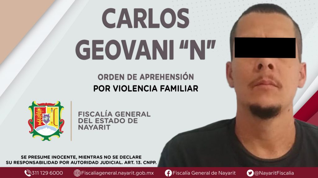 La Fiscalía General de Nayarit a través de la Agencia de Investigación Criminal dio cumplimiento a una orden de aprehensión en la ciudad de Xalisco contra Carlos Geovani “N”, por su presunta responsabilidad en hechos que según la ley configuran el delito de violencia familiar, cometido en agravio de un niño de identidad reservada.