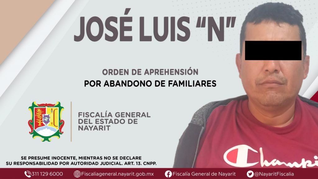 La Fiscalía General de Nayarit a través de la Agencia de Investigación Criminal dio cumplimiento a una orden de aprehensión en la capital nayarita contra José Luis “N”, por su presunta participación en hechos que según apreciación de la ley encuadran el delito de abandono de familiares, cometido en agravio de cuatro personas menores de dieciocho años de identidad reservada.