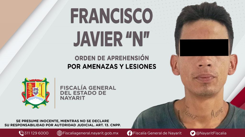La Fiscalía General del Estado a través de la Agencia de Investigación Criminal dio cumplimiento a dos órdenes de aprehensión en la localidad San Cayetano, municipio de Tepic contra Francisco Javier “N”, la primera por su presunta participación en hechos que según apreciación de la ley configuran el delito de amenazas, en tanto la segunda orden es por su probable responsabilidad penal en hechos que la ley establece como delito de lesiones, cometidos en agravio de una mujer de identidad reservada.