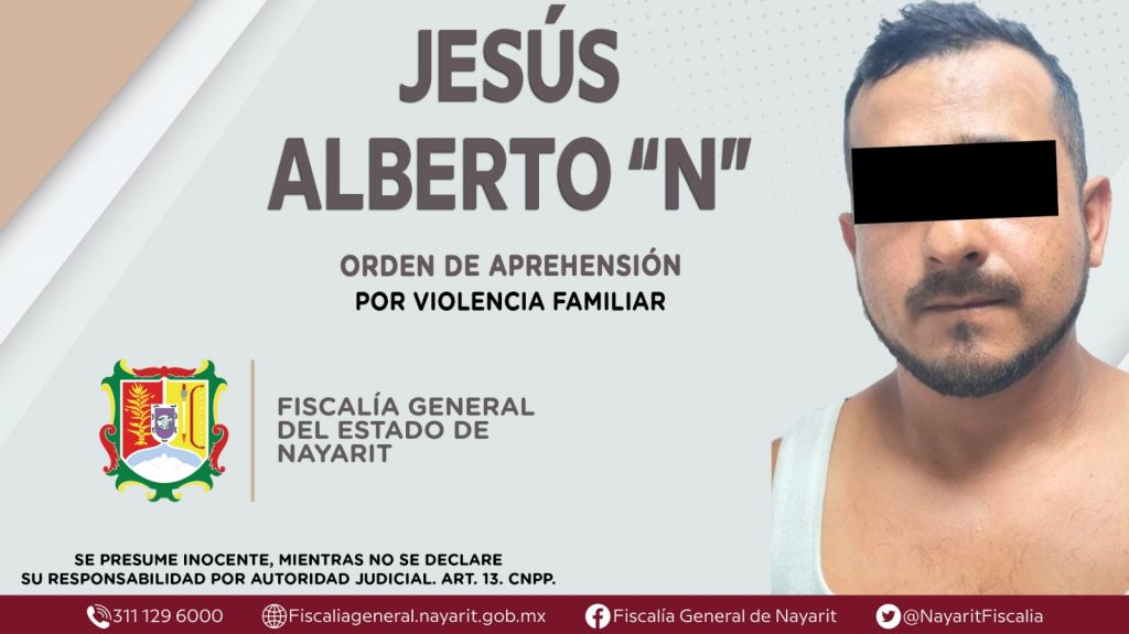 Elementos de la Agencia de Investigación Criminal de Nayarit ejecutaron una orden de aprehensión contra Jesús Alberto “N”, por su presunta participación en hechos que según apreciación de la ley encuadran el delito de violencia familiar, cometido en agravio de una mujer de identidad reservada.