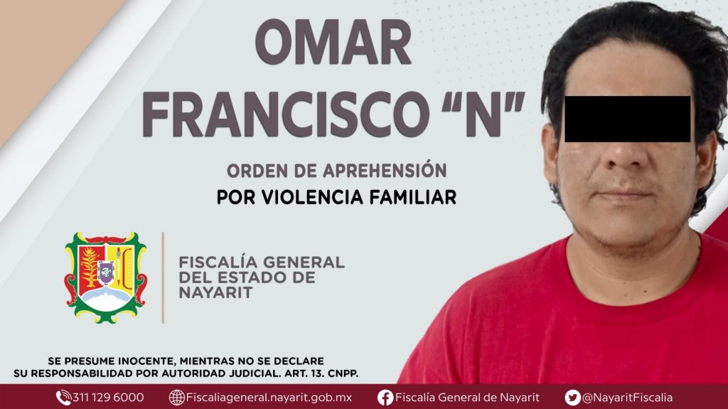 La Fiscalía General de Nayarit a través de la Agencia de Investigación Criminal dio cumplimiento a una orden de aprehensión en la ciudad de Tepic contra Omar Francisco “N”, por su presunta participación en hechos que según apreciación de la ley configuran el delito de violencia familiar, cometido en agravio de una mujer de identidad reservada.